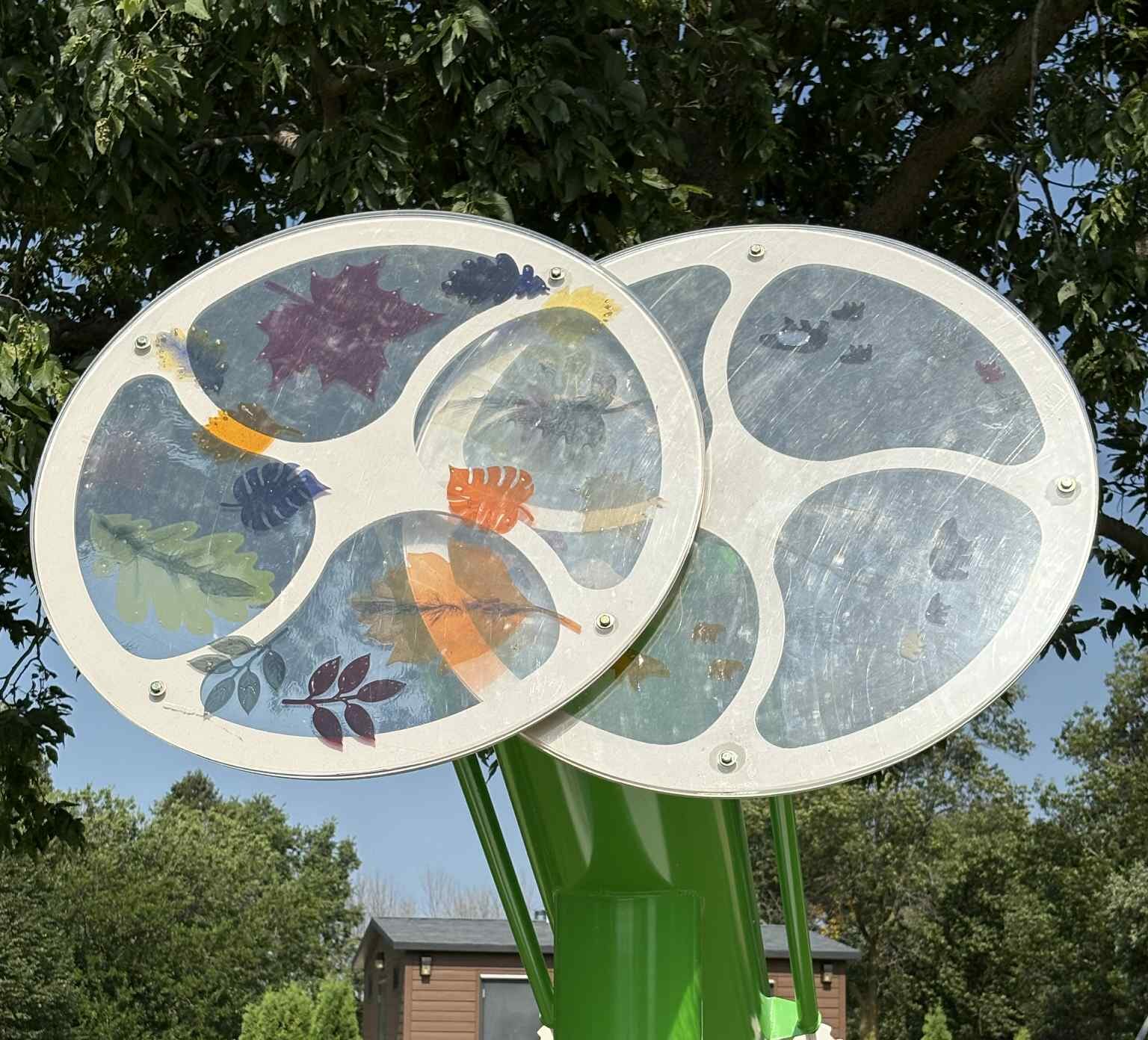 Discover the fascinating kaleidoscopes across Pocahontas County, Iowa! Known as a major tourist attraction for Pocahontas, these 11 kaleidoscopes provide a fun day trip for your family and friends. Each one as different colors to represent the history of the community and a unique design inside. The Little Clear Lake Scope is green and tan to represent the County Conservation colors. It is nestled among the campground and playground equipment at this beautiful county park, which is the perfect place to enjoy kayaking!