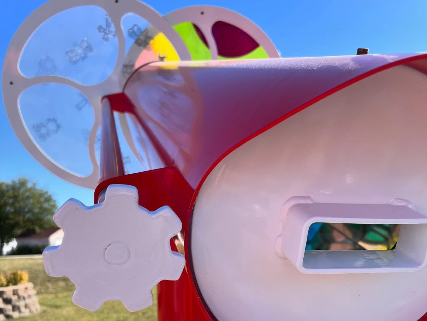 Discover the fascinating kaleidoscopes across Pocahontas County, Iowa! Known as a major tourist attraction for Pocahontas, these 11 kaleidoscopes provide a fun day trip for your family and friends. Each one as different colors to represent the history of the community and a unique design inside. The Pocahontas Scope is red and white in honor of school colors, with one tie-dye wheel and the other wheel featuring fun shapes and objects. It is located at the end of Main Street at Gateway Park, just across the street from Pocahontas Inn & Suites. Spend the morning shopping at the retail stores, enjoying a drink from the coffee or tea shops, or end the day here to catch a movie at the historic Rialto Theatre.