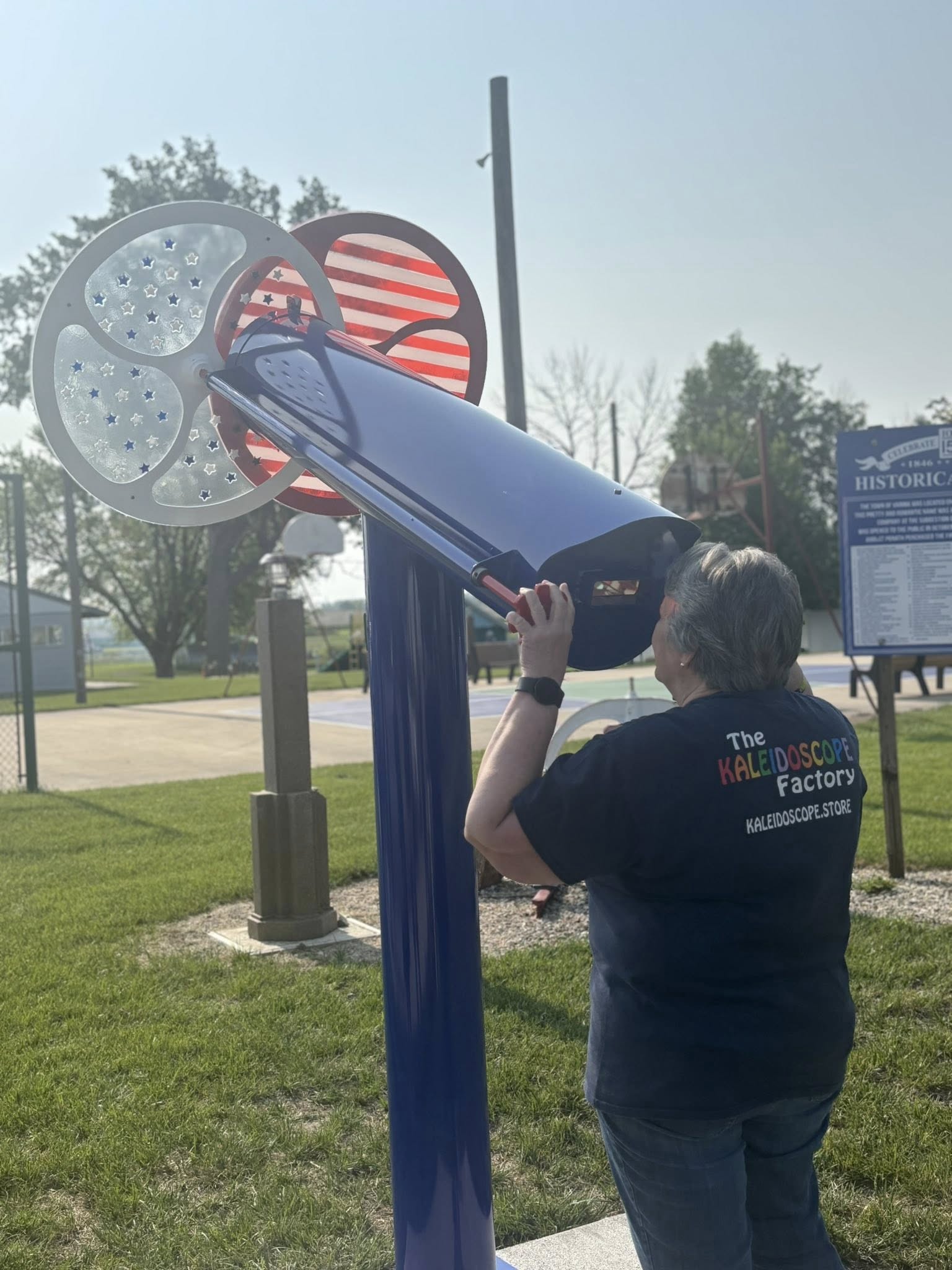 Discover the fascinating kaleidoscopes across Pocahontas County, Iowa! Known as a major tourist attraction for Pocahontas, these 11 kaleidoscopes provide a fun day trip for your family and friends. Each one as different colors to represent the history of the community and a unique design inside. The Varina Scope is patriotic themed as red, white and blue with stars and stripes on the wheels. Enjoy a round of pickleball at Varina City Park while you’re there!
